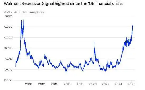 沃尔玛在2026年2月发布的最新财报支持了这一信号。首先,高收入者入场:沃尔玛管理层指出,其市场份额的增长主要来自年收入超过10万美元的家庭,这意味着中产阶级也在加速转向折扣店。其次,低收入者承压:年收入低于5万美元的家庭表现出明显的“缩减开支”迹象,许多人正处于“从工资支票到工资支票”的紧平衡状态。而且尽管业绩超预期,但沃尔玛对2027财年的指引非常谨慎,暗示其对消费者韧性持保留态度。